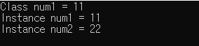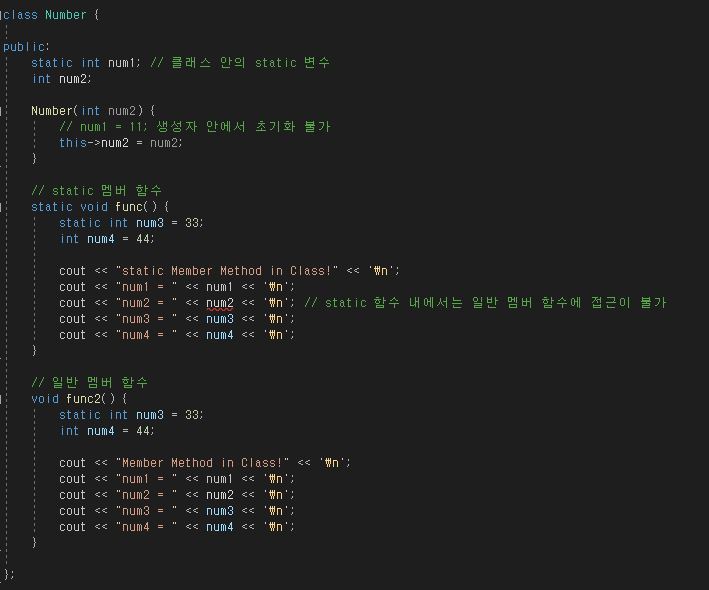 int Number::num1 = 11; // static 멤버 변수는 클래스 바깥 전역에서 초기화 가능